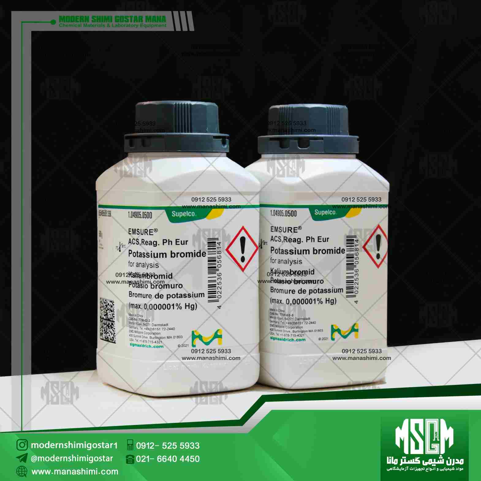 پتاسیم بروماید مرک ۱۰۴۹۰۵ | Potassium bromide یک ترکیب معدنی با خلوص آنالیتیکال است که بهطور گسترده در صنایع داروسازی، آزمایشگاههای تحقیقاتی، و کاربردهای طیفسنجی مورد استفاده قرار میگیرد. این محصول تحت استانداردهای کیفی برند Merck (سری Supelco) عرضه شده و با درجه EMSURE® مطابق با الزامات ACS و Ph Eur ارائه میشود.