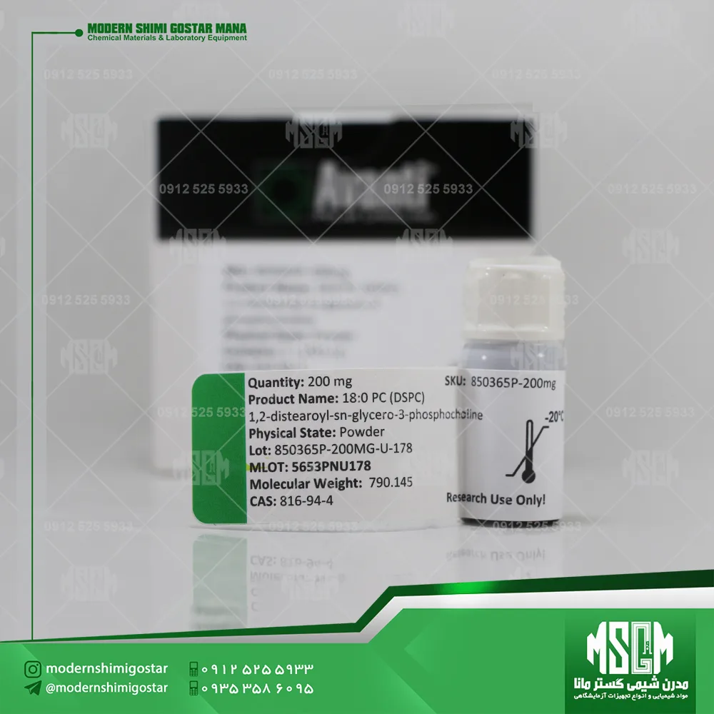 ۱۸:۰ PC (DSPC) با نام علمی ۱,۲-dioctadecanoyl-sn-glycero-3-phosphocholine و شماره CAS 816-94-4 یکی از مهمترین فسفولیپیدهای اشباع موجود در صنعت داروسازی نوین است. این ترکیب به دلیل دمای گذار فازی بالا، پایداری ساختاری و خلوص بالای بیش از ۹۹٪، بهطور گسترده در سیستمهای پیشرفته رسانش دارو، واکسنهای mRNA، نانوذرات لیپیدی و تحقیقات بیوفیزیکی مورد استفاده قرار میگیرد.